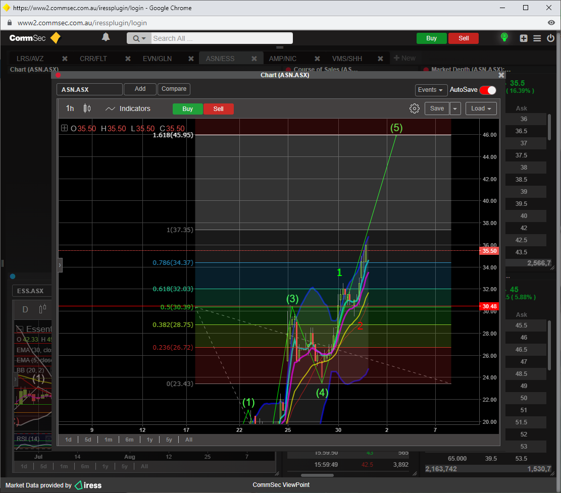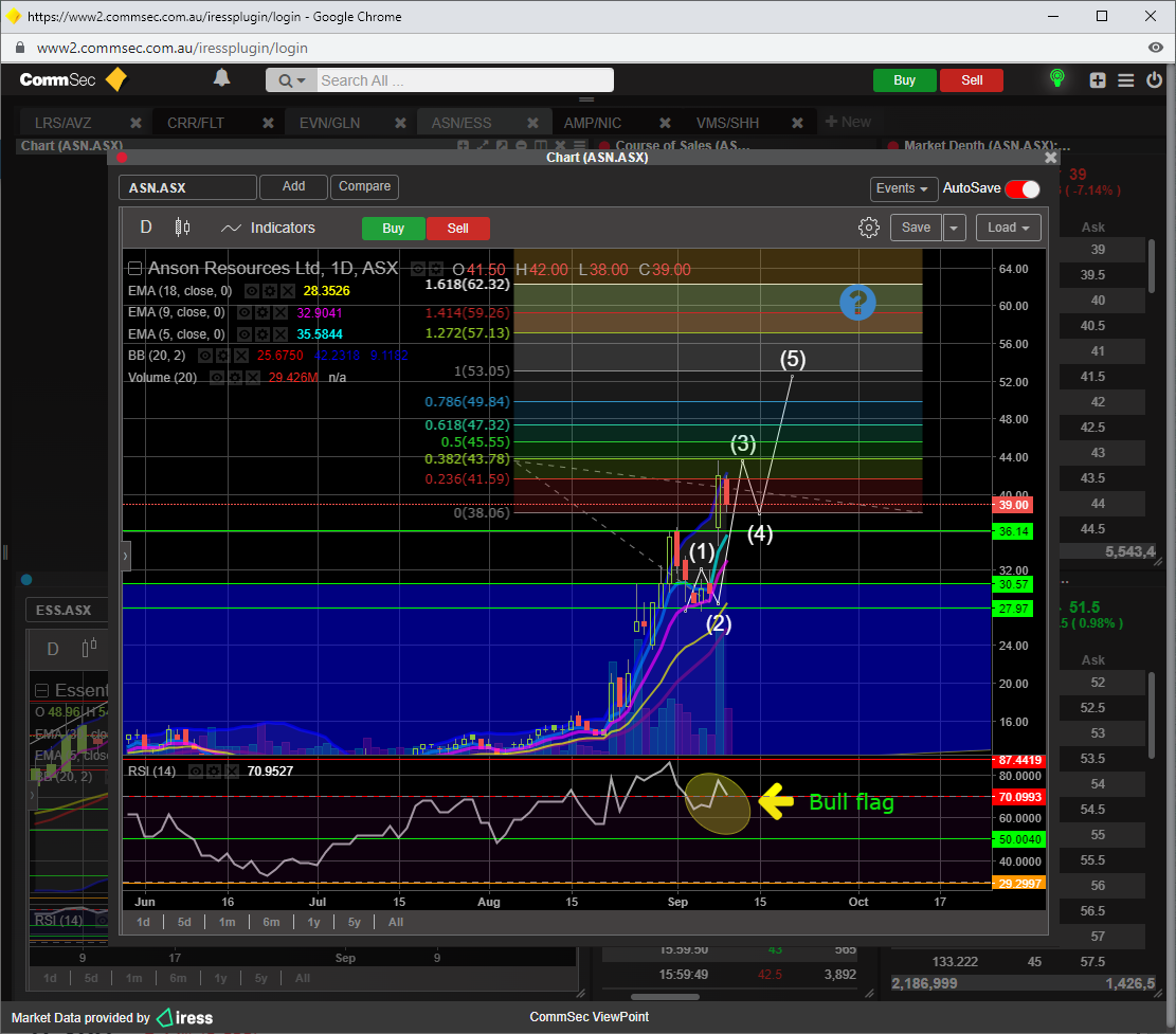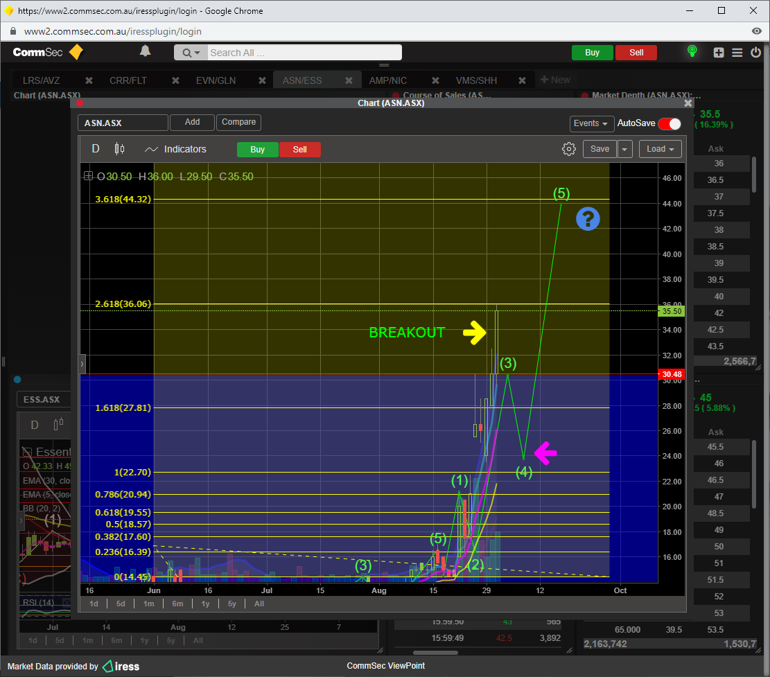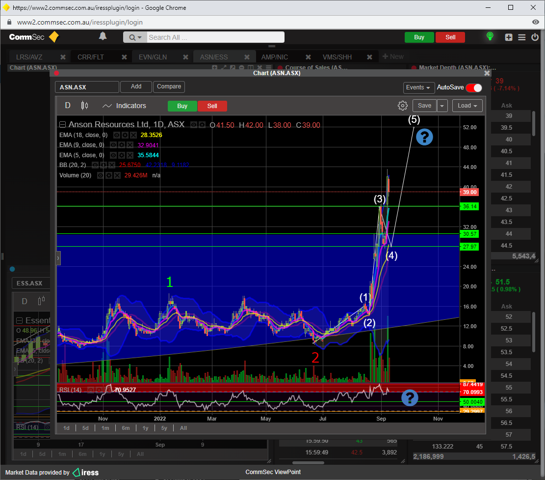 RSI 14 is 82, thats pretty over bought, and for ASN to go the next leg up and beyond, then that indicator needs to reset to the 50 level or just above.