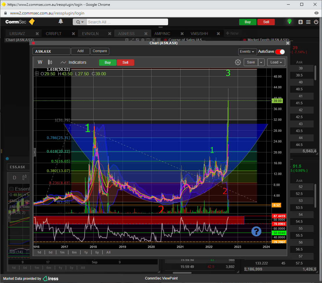 That being said, I still think ASN is going thru the ABC cycle, there was an attempt to break the ATH of 31.5 ( green bubble ), but failed and now we have a double top.