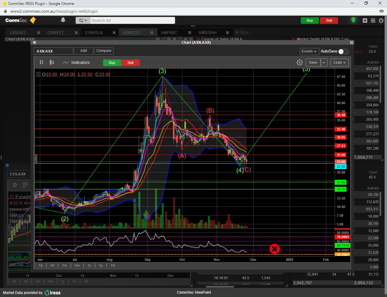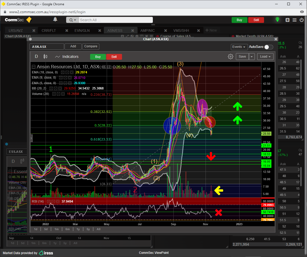 I do make mistakes , like when i sold 50% of holdings around the blue bubble area and missed the upside into the 40s ( SUNRESIN DEAL ), then bought more around the pink bubble only to find that it was a fake out...........