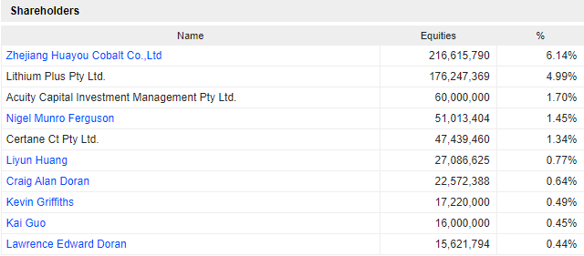 Based on the top 20 shareholders on the AVZ website, there's 237m shares that seemingly have gone poof.