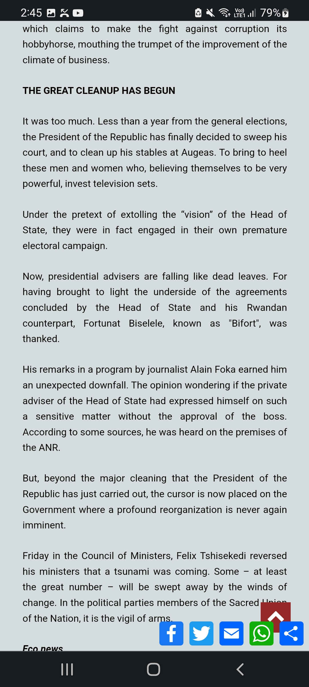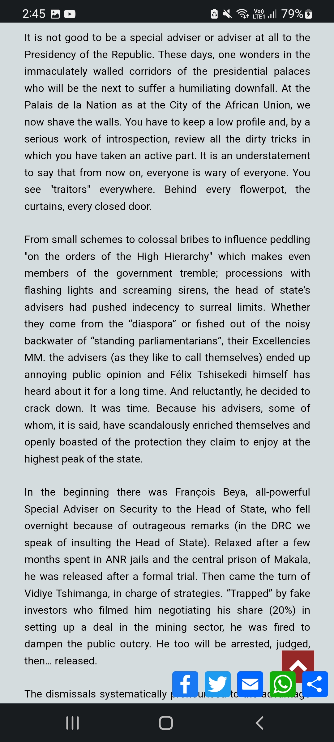 Already in 2021, the Minister of Mines, Antoinette N'samba Kalambayi, submitted a report to the Congolese Head of State, Félix Tshisekedi, which stressed the non-compliance with SICOMINES' commitments in the exploitation of copper and cobalt in Greater Katanga.