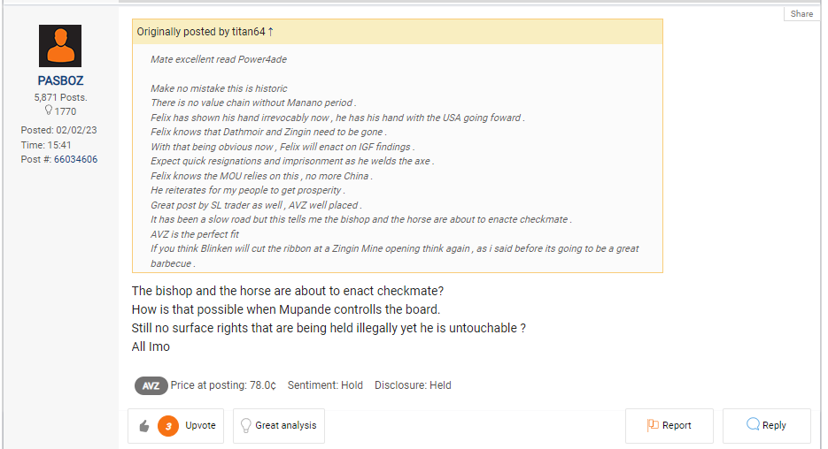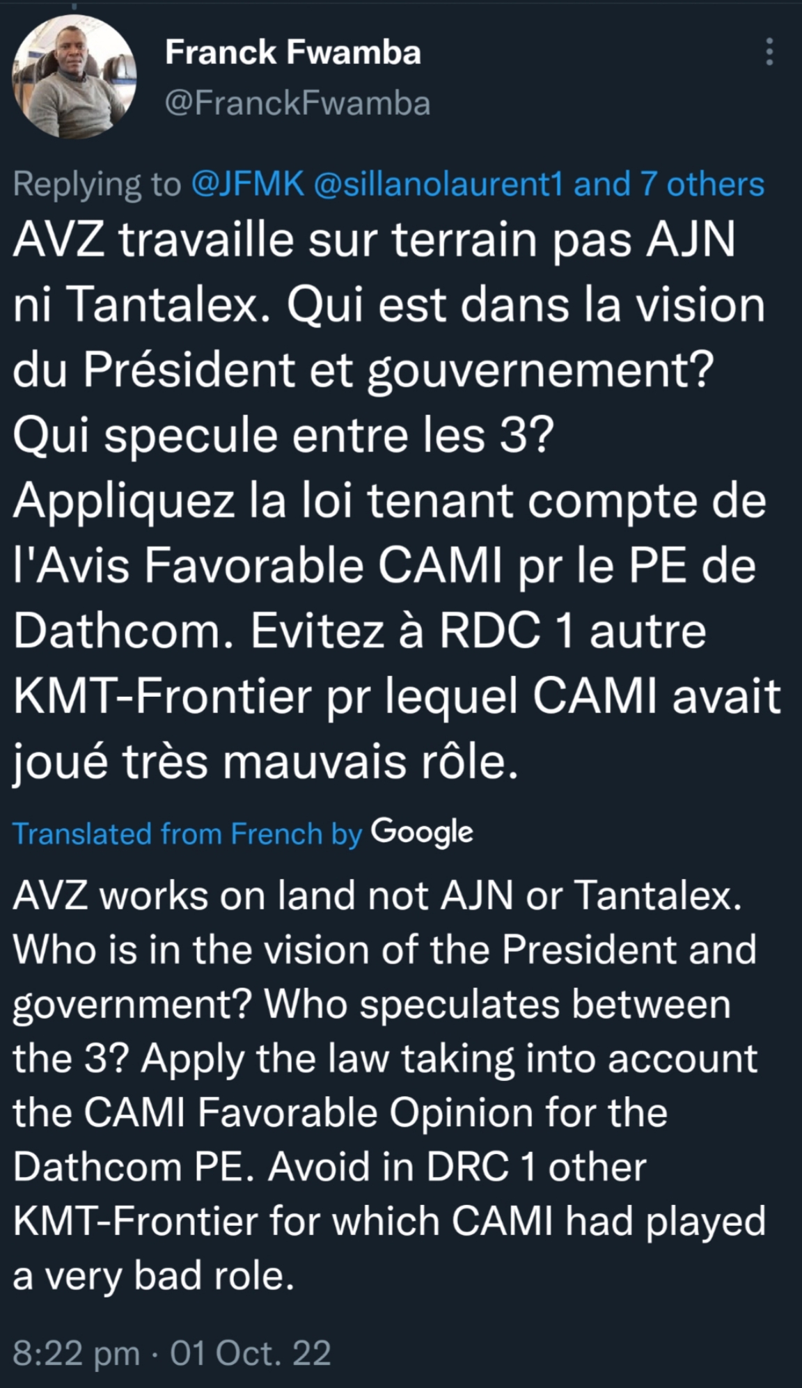 The fact nobody but Jules Alingete has spoken remotely supporting AVZ is a fucking travesty. But also telling that the most honest guy around is on our side per-say. If Felix isn't full of shit about his corruption policies then that's a big plus.
