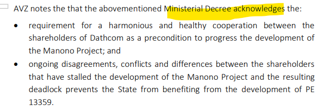 PRECONDITION TO PROGRESS THE MANONO PROJECT.