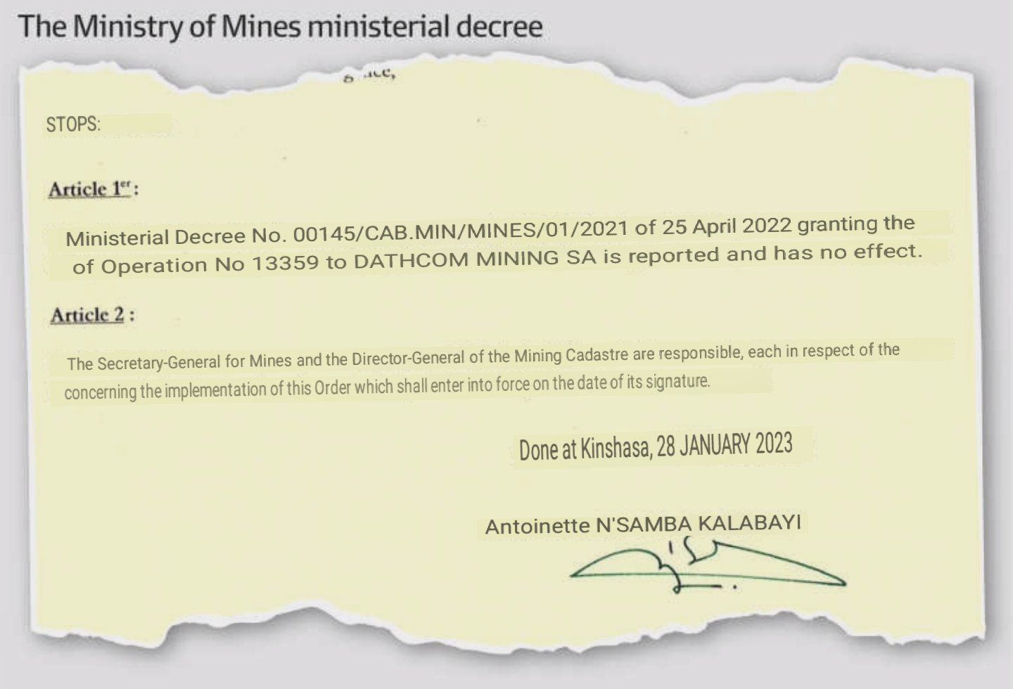 FT doesnt want to ruffle feathers with the Chinese, cause they have a strangle hold on the DRC financially and want their pound of flesh in return, plus they could be very influencial when it comes to FT re-election prospects......positively or negatively