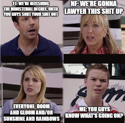 IIRC MoM has 30-days from application to issue a decree? IMO we are obtaining legal advice because we are well outside that 30-day period now and the only decree the MoM has issued was rubbish that they ended up rescinding. So AVZ now trying to figure out whether to wait for new decree - which will absolutely come to replace old one - or take it straight to court to have it approved. Either way, an actual timer running down now to more news on this.