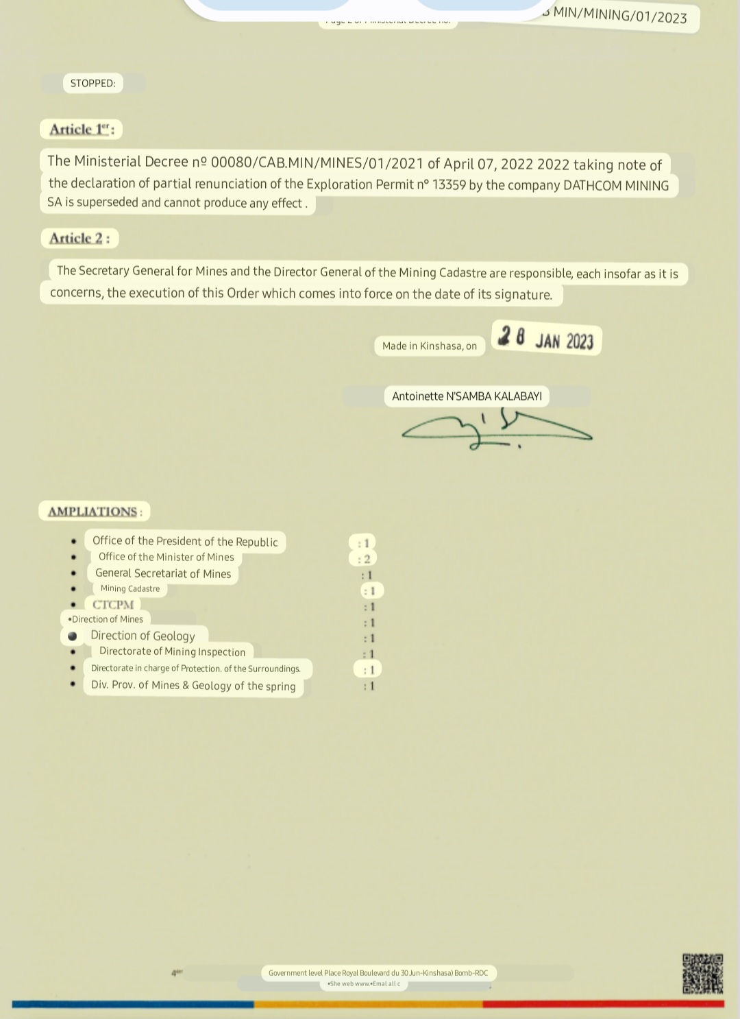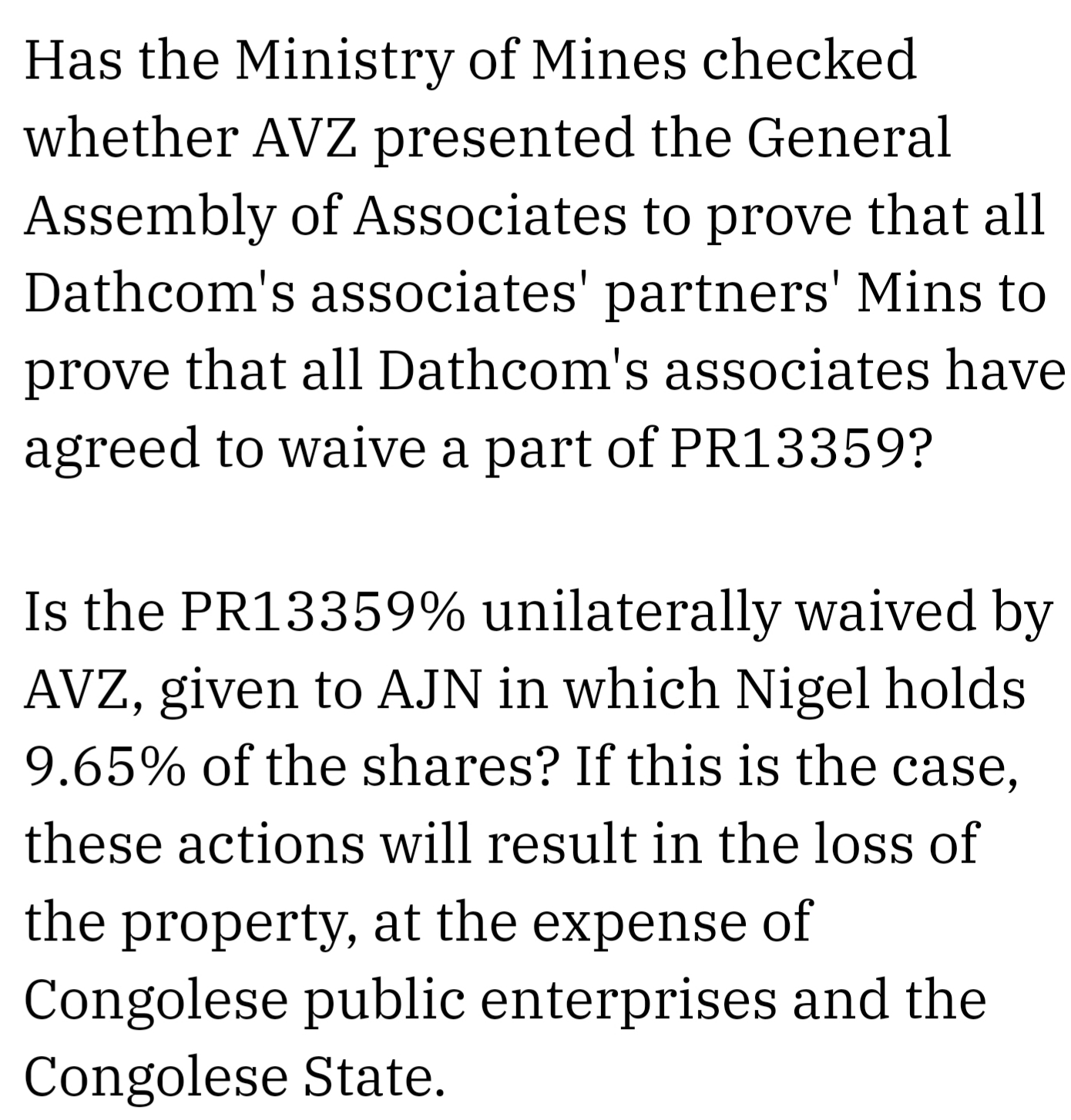 Best case scenario here and a lubed up Avenue would be Zijin issuing offical letter stating that it has no legal holding on the 15% and from there everything should move on with AVZ issuing a sum ; if zijin or other choose to come in at a higher price , we’ll there’s nothing we can do about that as everything is above board