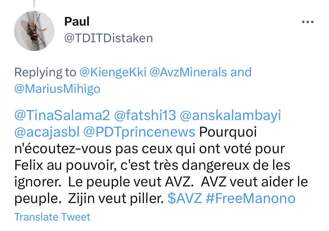 It does seem as if wires were crossed or MOM has not yet been captured by the Chinese $$.It's too politically risky for Felix to have Zijin involved in Manono right now considering the IGF report and heat from the gringos. More likely they will be given a pathway to buy into the project at a later date. Easiest way to do that is through buying out AJN to acquire the north that Dathcom waived after the DFS is complete imo