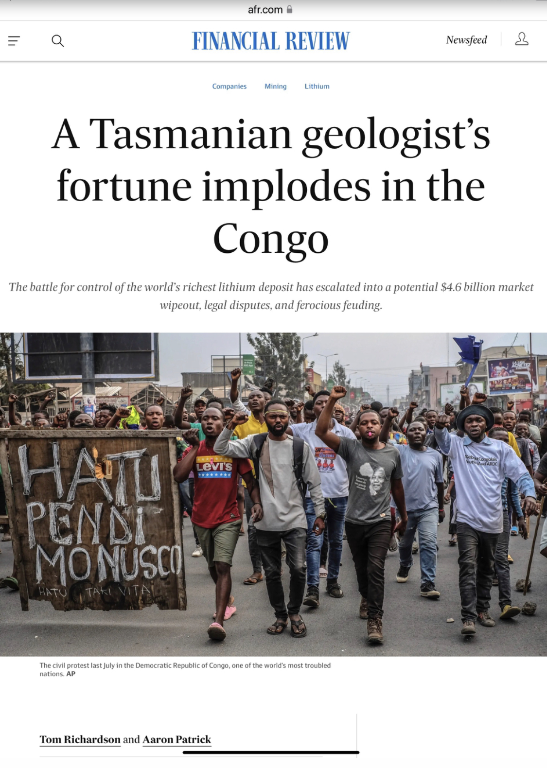 If it wasn't blatant deception it would be a joke the lengths he has gone to manipulate investors against AVZ including his recent AFR article showing a group of protestors in North Kivu protesting a completely unrelated matter....