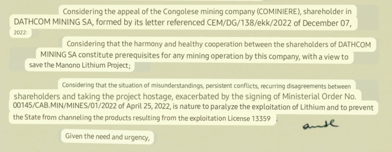 You'd think Felix would be aware of the world's largest known hard rock lithium deposit in his own backyard that has world interest, Chinese all over it, various parties clamouring for control, international court cases and arbitrations in place, investigations and reports by the department he specifically pumped up in the IGF to weed out corruption as he happens to be spruiking the world stage for investment in mining in the DRC