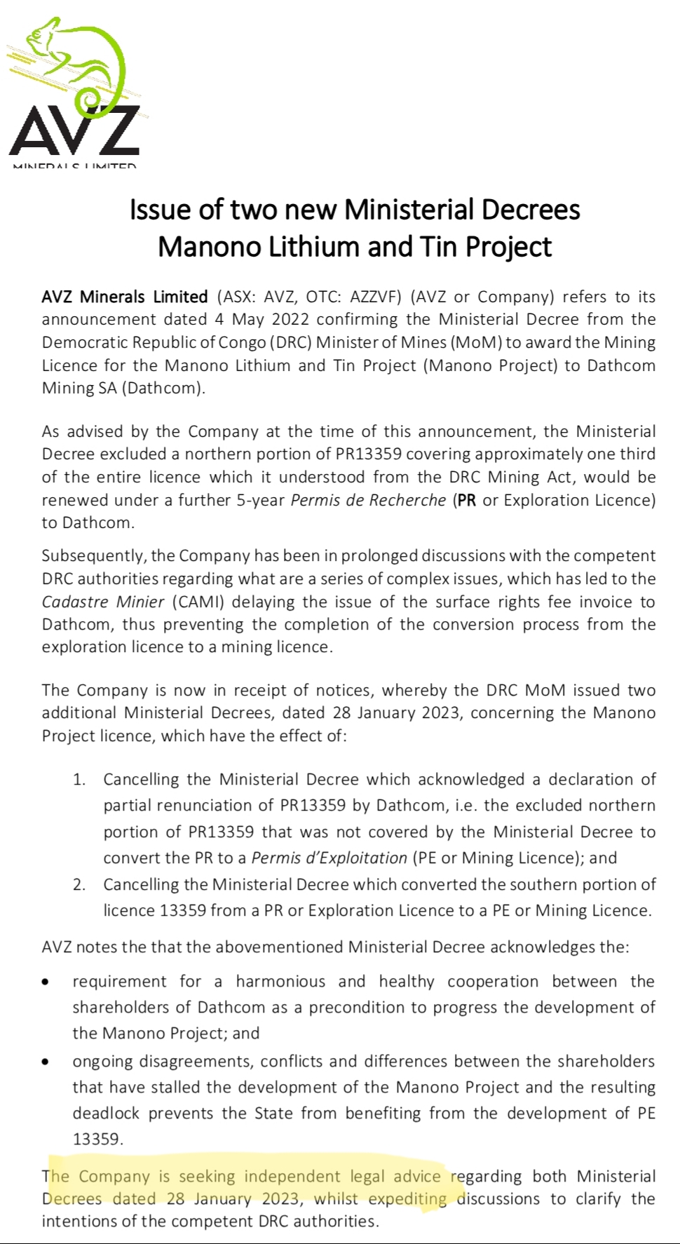 It would seem that AVZ management disagree with your assessment based on the official announcement regarding this matter