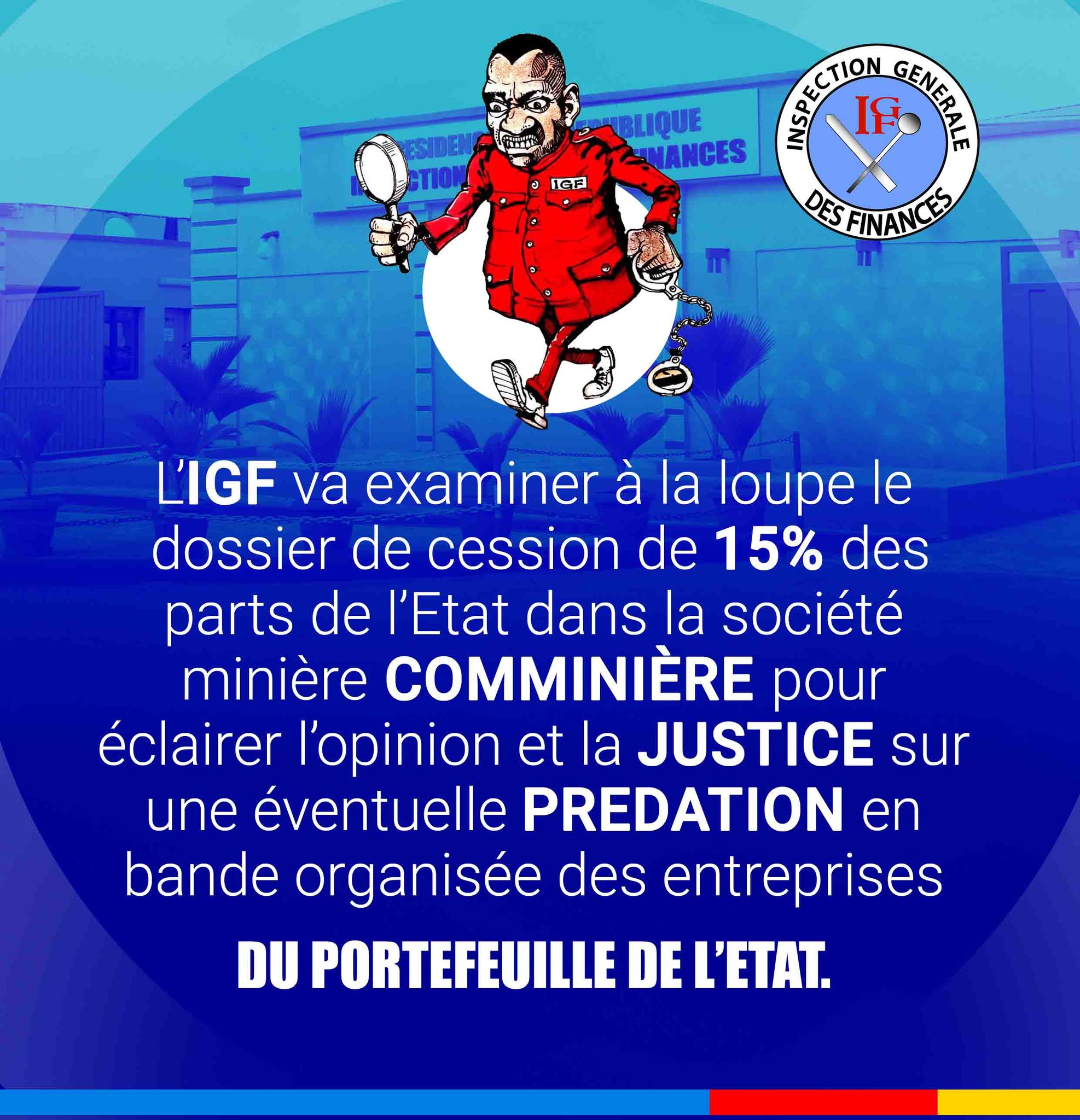 The IGF, which knows how to call a spade a spade, suspects three officials: the Managing Director ai of Cominière SA, Athanase Mwamba Misao, the members of the Board of Directors of Cominière who allegedly authorized these operations, the Minister of Portfolio Adèle Kahinda Mayna.