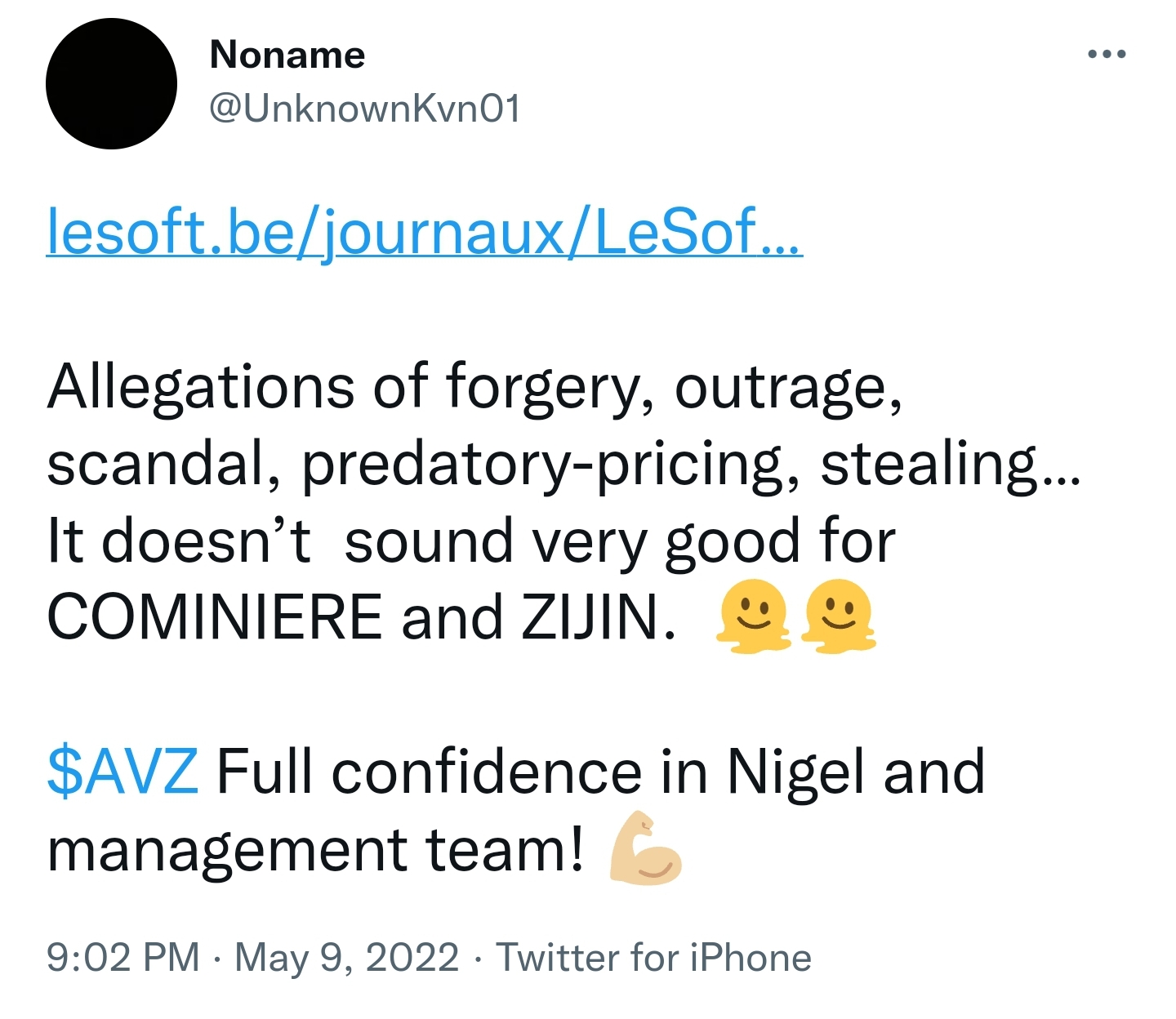 In fact, the 15% of the shares of Cominière SA valued at US$150,000,000 (one hundred and fifty million US dollars) were sold to Zijin Mining for a total value of US$33,440,000 (US dollars). Americans thirty-three million four hundred and forty thousand). This results in a shortfall of US$116,560,000 (US dollars one hundred and sixteen million five hundred and sixty thousand)”; “Waste of the proceeds from the sale of 15% of the shares of Cominière SA in the company Dathcom Mining.