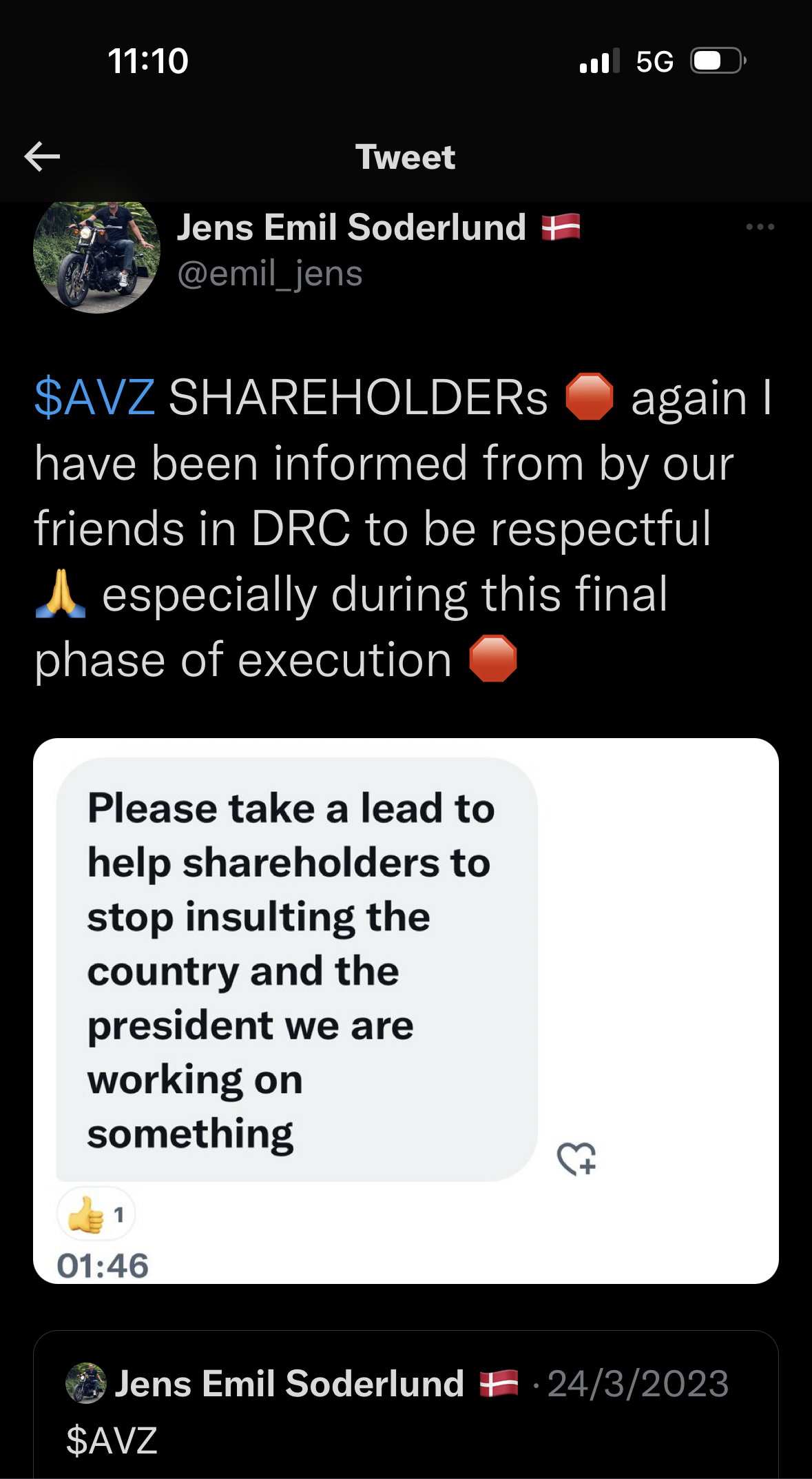 Just watched an interview with Nicolas Kazadi and he was stressing the importance of time and how the DRC needs to get the battery manufacturing up and running as soon as possible. He also mentioned the importance of ESG which you can see we fulfilled in the Sustainability Report