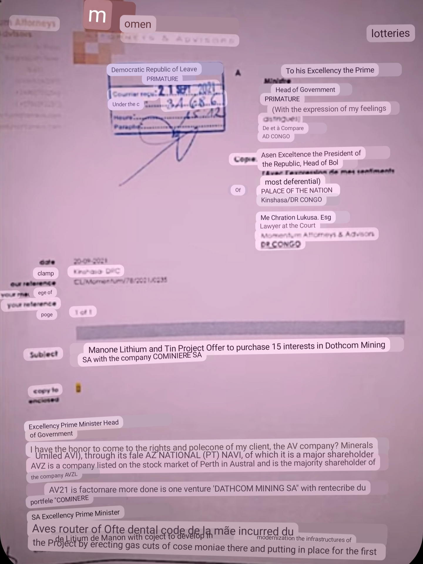 To my knowledge the correspondence documents between Cominiere and AVZ in early August 2021 are not publicly available... yet