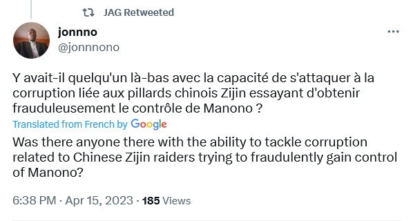 MMCS has not given up yet. A reliable source indicates that one of the witnesses, chosen by MMCS is an agent in mines. Son of a former Attorney General of the Republic, he is also president of a bar. Curiously, he is both judge and party. He was one of the managers of the