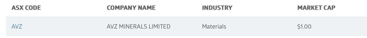 Anyone else having the value of their AVZ portfolio reduced to zero? This from the ASX:-