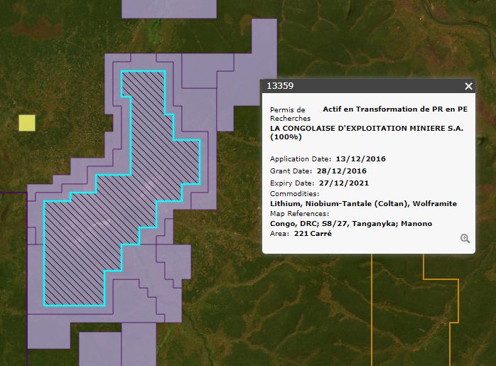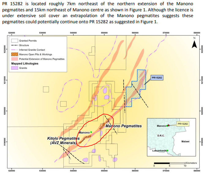 The diagramatic view of where PR 15282 sits is below. I have highlighted the main Manono area which houses CDL and Roche Dure within tenement PR 13359