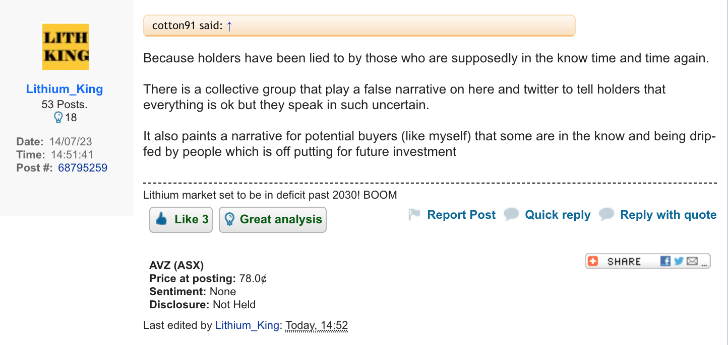 Thanks Chilla appreciate the support. Disappointed that the lithium king name has been tarnished on the crapper by an a grade flog who certainly has suspicious motives