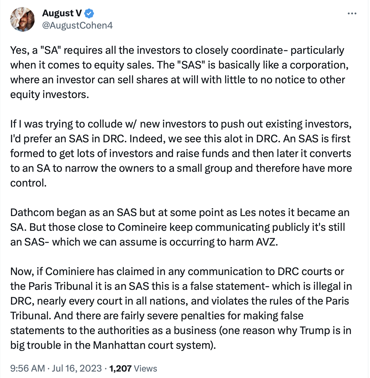 In my view the reason for this is that there is a large IQ disparity amongst groups of AVZ shareholders. Contrary to popular belief, there are AVZ shareholders with an IQ above 70. There are those who were aware of the corruption in the DRC but had a high risk tolerance and chose to invest, getting in early for the huge resource and an acceptable risk to reward ratio. Then there is the other group, who invested based on hotcrapper comments. This second group were totally surprised and shocked by the corruption in the DRC. They are easily identifiable from their comments and it is quite funny to read the state of shock and amazement as they exclaim "OMG I'm never investing in DRC again" and similar.