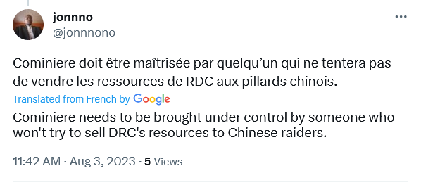 Kibeya has no power, he is not a threat, he has lost his support within CAMI which then flows onto Zijin who are now shitting in their pants that The King of CAMI Jean-Felix Mupande has been dethroned