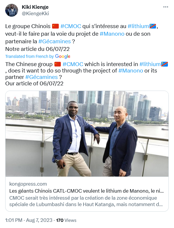 " I wanted more details so I reached out to my contacts in Kinshasa. Zijin is now out, Cmoc is out and detractors are out. " Jens 06/08/23