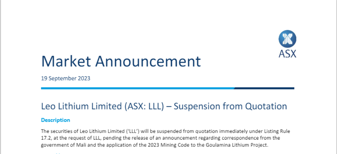 Leo Lithium is a joint venture between the Australians of Firefinch (FFX) through its subsidiary Timbuktu Resources and the Chinese of Ganfeng Lithium with 50%, Leo Lithium is the company which hosts the assets as part of the Goulamina Lithium Project in Mali , Ganfeng Lithium is China's largest lithium chemicals producer by capacity, with a 10% stake from the Malian state.