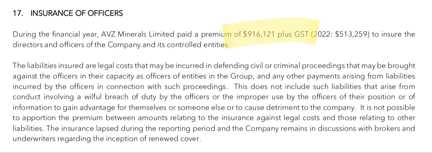 So on top of the 2.1m we are paying them we need to pay 1m inc gst to insure them. No doubt some of the premium increases are due to rising insurance costs generally but it doesn't fill me with confidence that the insurance company sees so much risk here.