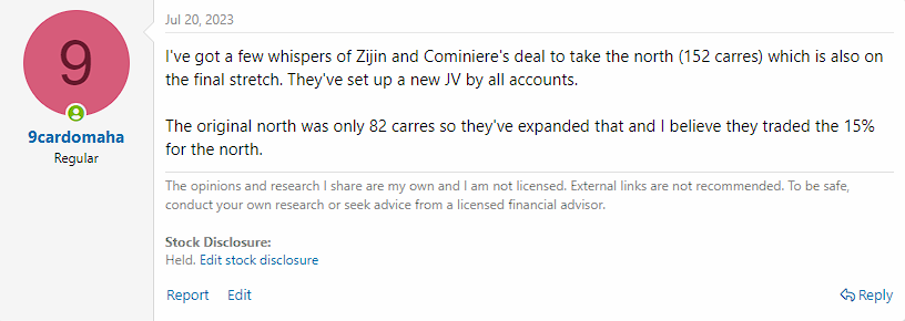 - Neither have zijin, despite their best efforts they have rescinded (sort of) their 15% claim and things not looking good for them at arbitration