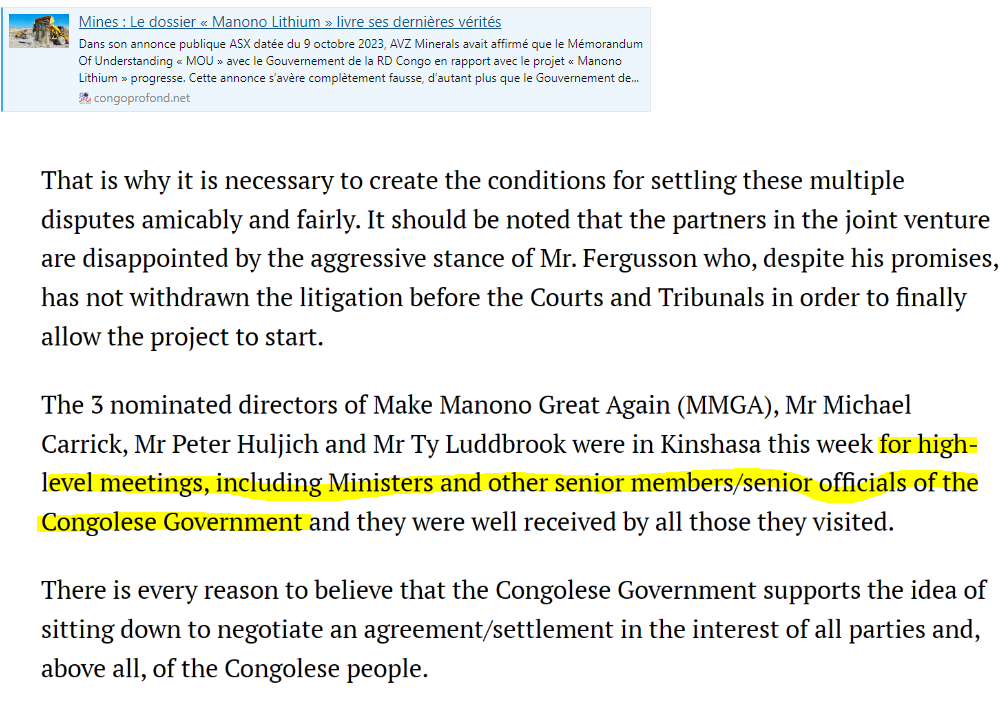 If you pay enough, than in the DRC everything is possible...but you're right, it is unbelievable what these three fucking guys have done. With the announcement of the MoU there was a little hope in the past weeks, but those idiots destroy everythingHow the fuck can this be legal? Surely you cannot represent a company you have no authority ( or even employment ) in!