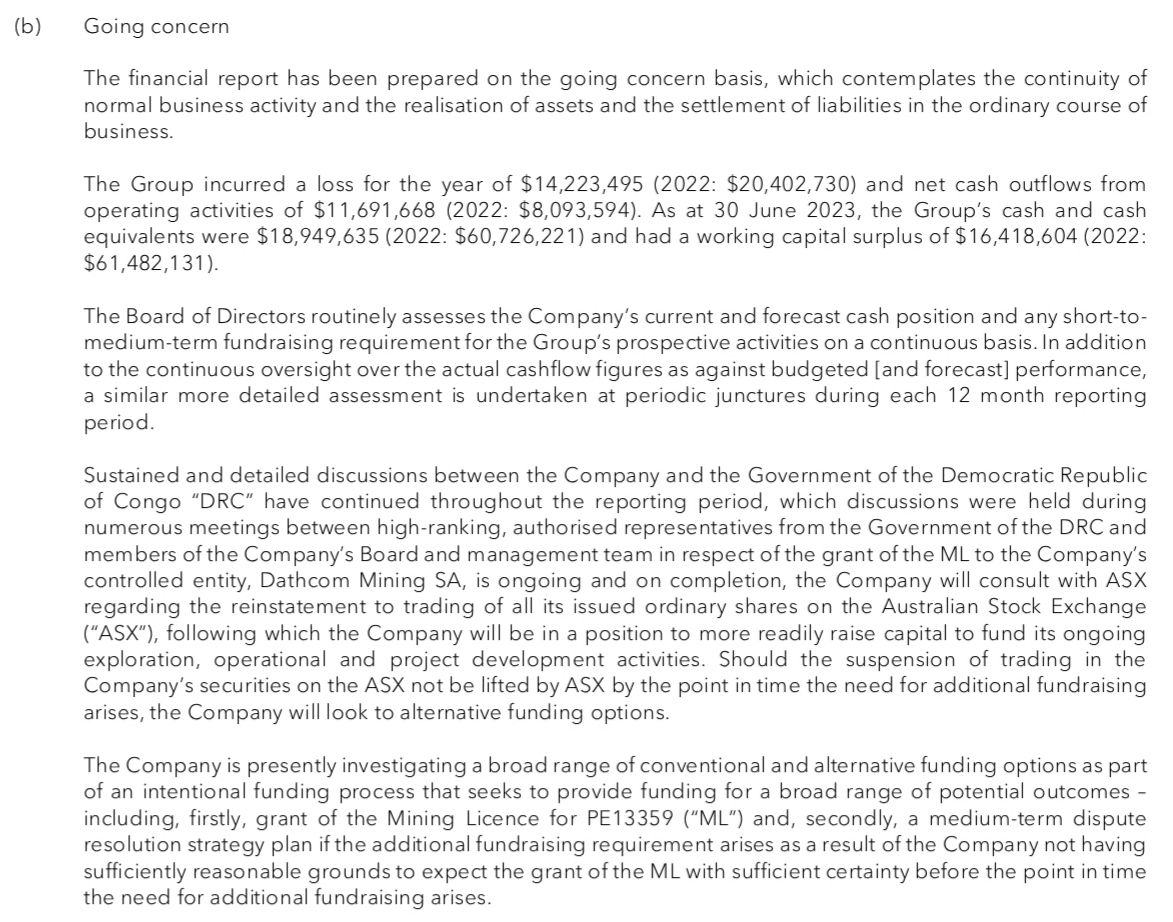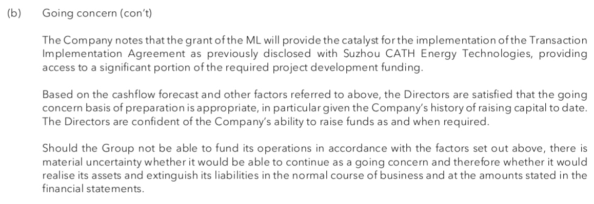 Carlos - dont we have a $50 million USD Bank Facility should we need it?That won't happen until after ML. Management very clear capital raise in suspension may be needed if cash runs low before ML. Auditors have drawn attention to the material uncertainty this causes imo