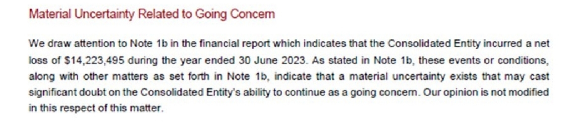 As I said…..I think you are over dramatising it. We will get clarity soon enough on whether or not there is an MoU pathway forward. That will set the scene for future funding requirements. We have sufficient funds as going concern. It was right of AVZ to highlight strategy of investigating funding options covering different scenarios.
