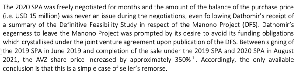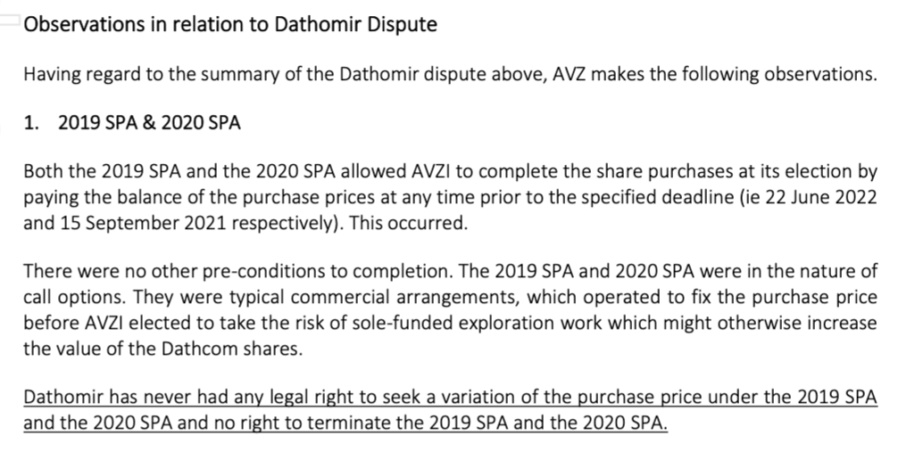 Just a simple statement like, " it has come to our attention that Dathomir is disputing the 15% transfer, AVZ are resolute that all processes were undertaken legally and we have good title. Dathomir dispute is spurious and lacks merit."