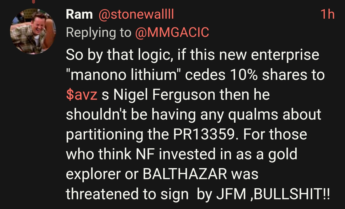 Bring on the MOU for the benefit of Manono, the project, the local population, the greater good of the DRC and also the LTSH's of AVZ who desire the best outcomes for all involved....a true win/win/win/win/win