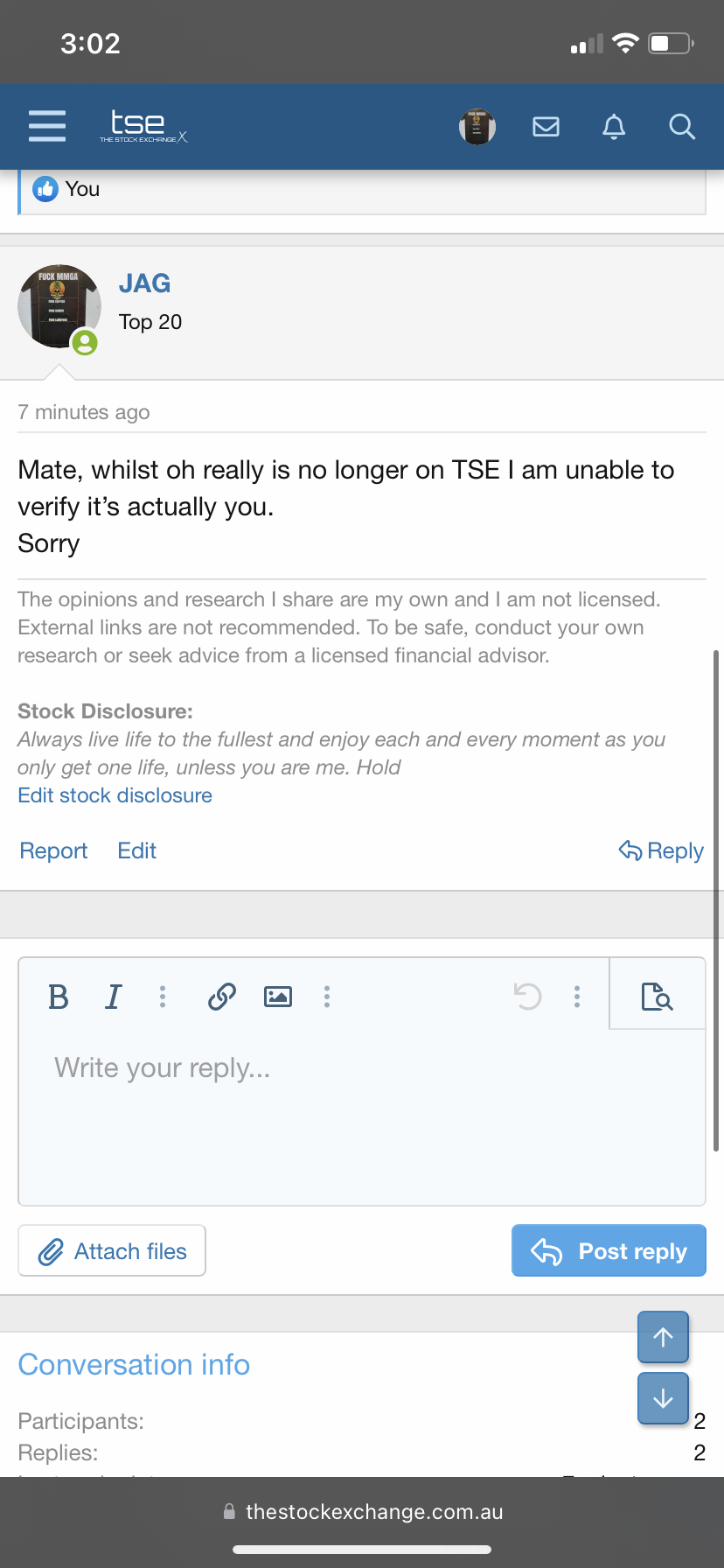 He also knows Ive offered to even prove to him Im a holder, I can even prove how I voted to silence the lemmings, and now Jag knows who I am as well. I've only done this to bring this cult insanity to an end and defend myself against ongoing false allegations based on, wait for it....."timing". Lets hope some here leave the investigating to those who can judge without emotion, as the last thing AVZ needs is more holier than thou holders with brown noses