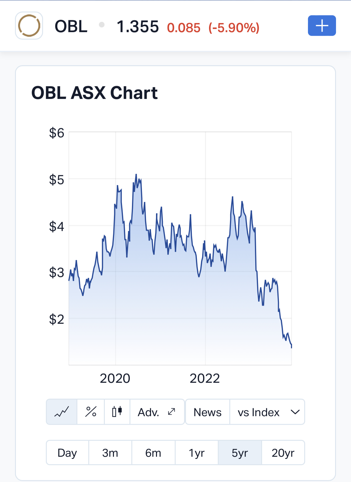 I threw in your 5 year chart too wankers. I think it might be time for Omni Bridgeway shareholders to start a class action against Omni Bridgeway