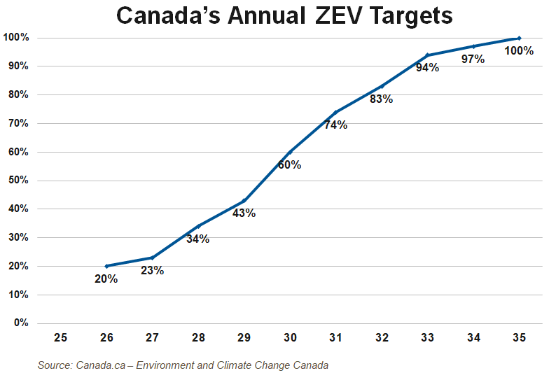 Canada’s Electric Vehicle Availability Standard published in mid-December calls for 100% zero-emissions vehicles by 2035.