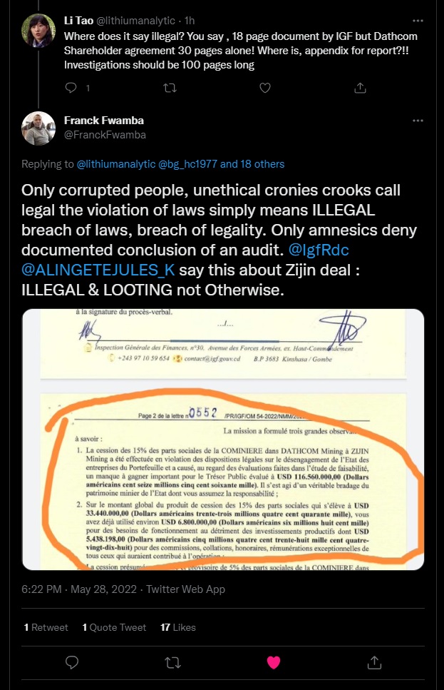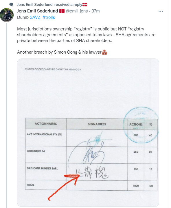 Thanks @Xerof I've missed this actual document to date amongst all the noise. What's surprised me most about it is the Dathomir 15% remains part of the equation, so it's clarified how anyone has been taking that even remotely seriously.These docs have been available for weeks now. That's why I mentioned a long time ago that the whole thing with Z and D was a buggers muddle, and needed to be looked at with an open mind. You could take the high road, and completely freeze everyone out, which Nigel seems to have done, and that may well be on excellent legal advice. I am confident AVZ are right, but it needs to be sorted by the DRC, if Nigel's advice is correct. It disturbs me that it doesn't seem to be able to be put to bed. YET.....