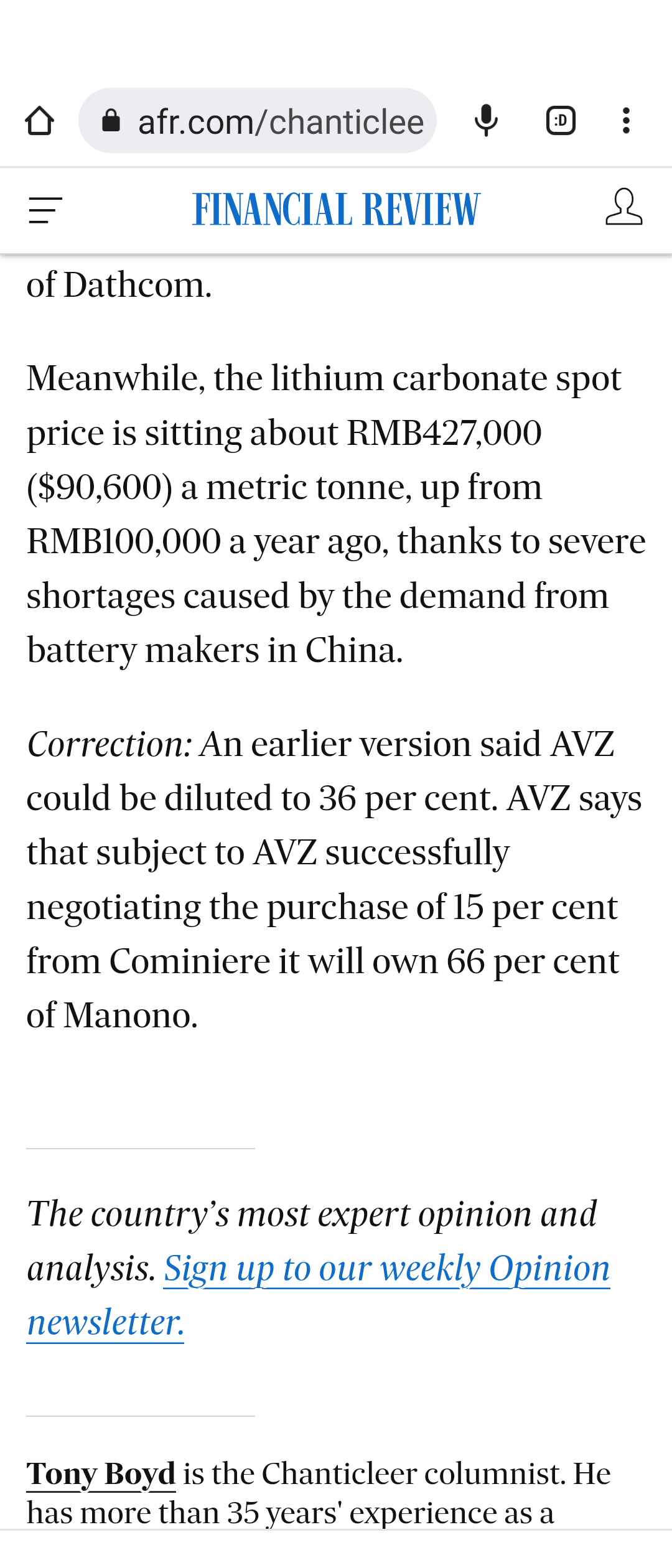 35 years of cut and paste experience more like it...........Not sure if this has been noted previously. A correction by AFR's Tony Boyd at the end of his pathetically researched article regarding AVZ battle against fraud and misinformation. View attachment 7981