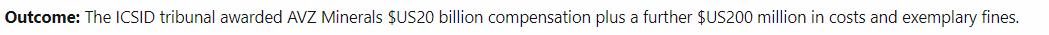Imo ICSID is likely our only chance to get a return on this investment and it's certainly the only path I'm interested in after what we've witnessed out of the DRC to date.