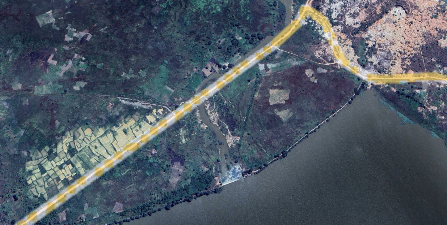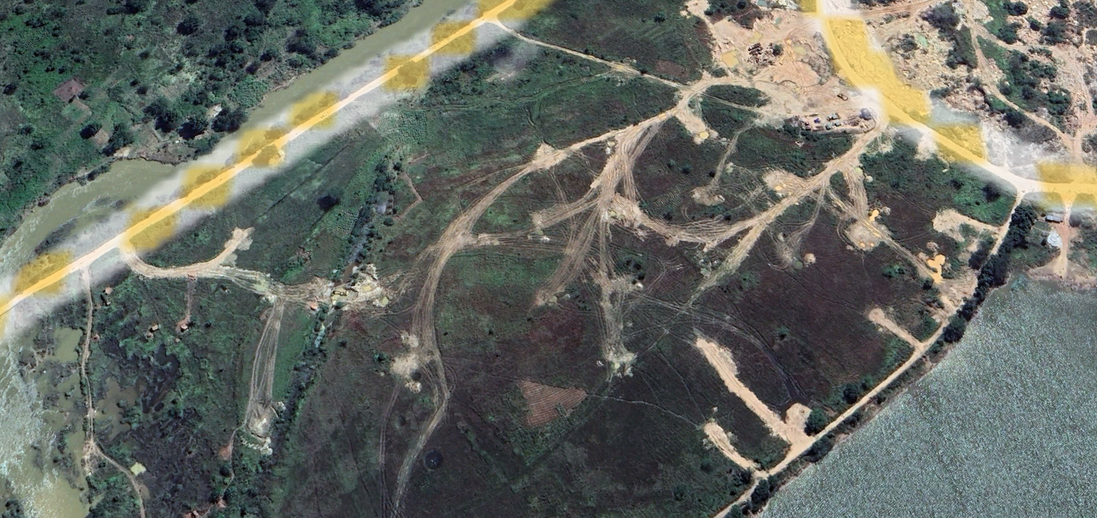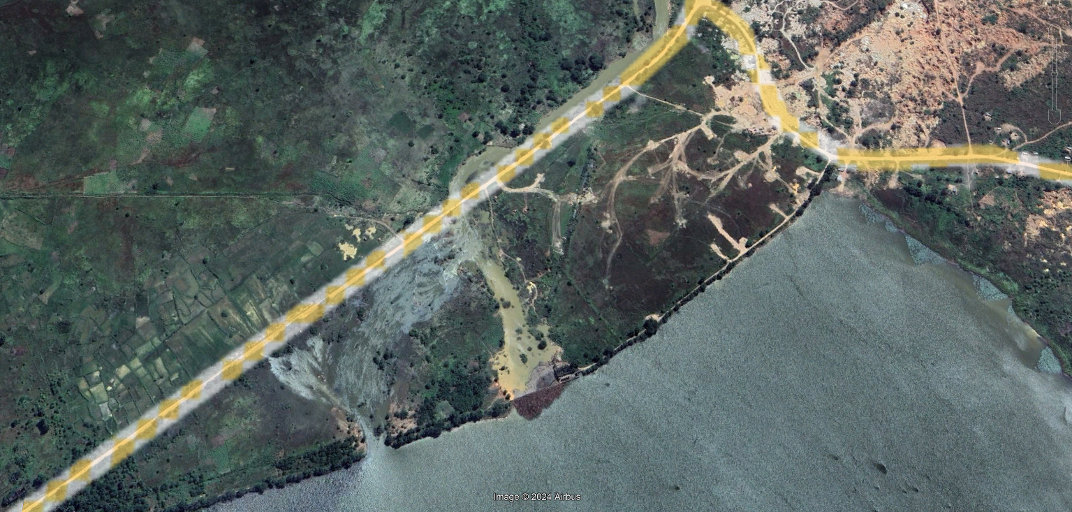 This is at the south west corner of Carrier de Leste, just below the embankment of Lake Likushi . Clearly visible are the new works from 2023 to 2024.