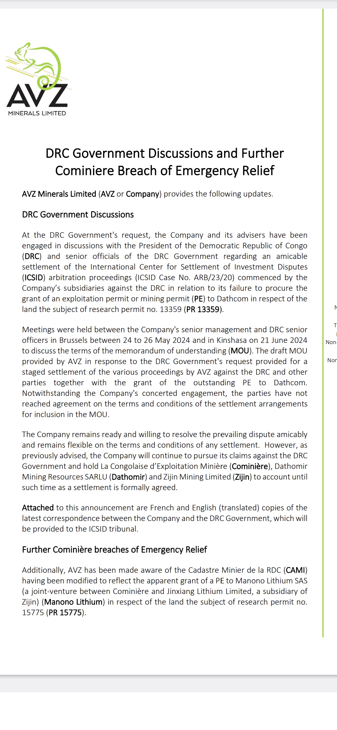 So the claims by AVZ are disadvantageous for the Republic ?