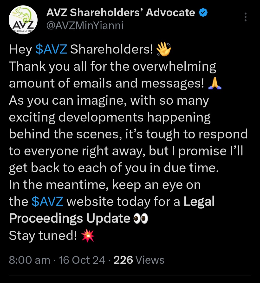 Mr Lukusa is an intelligent man. I would be willing to wager every single AVZ share I own that the money is still there as it ultimately, for now at least, legally belongs to powerful forces. Unfortunately it seems like most lawyers he has sold his soul to the highest bidder to aide their attempts to further delay our progress by playing idiotic games imo