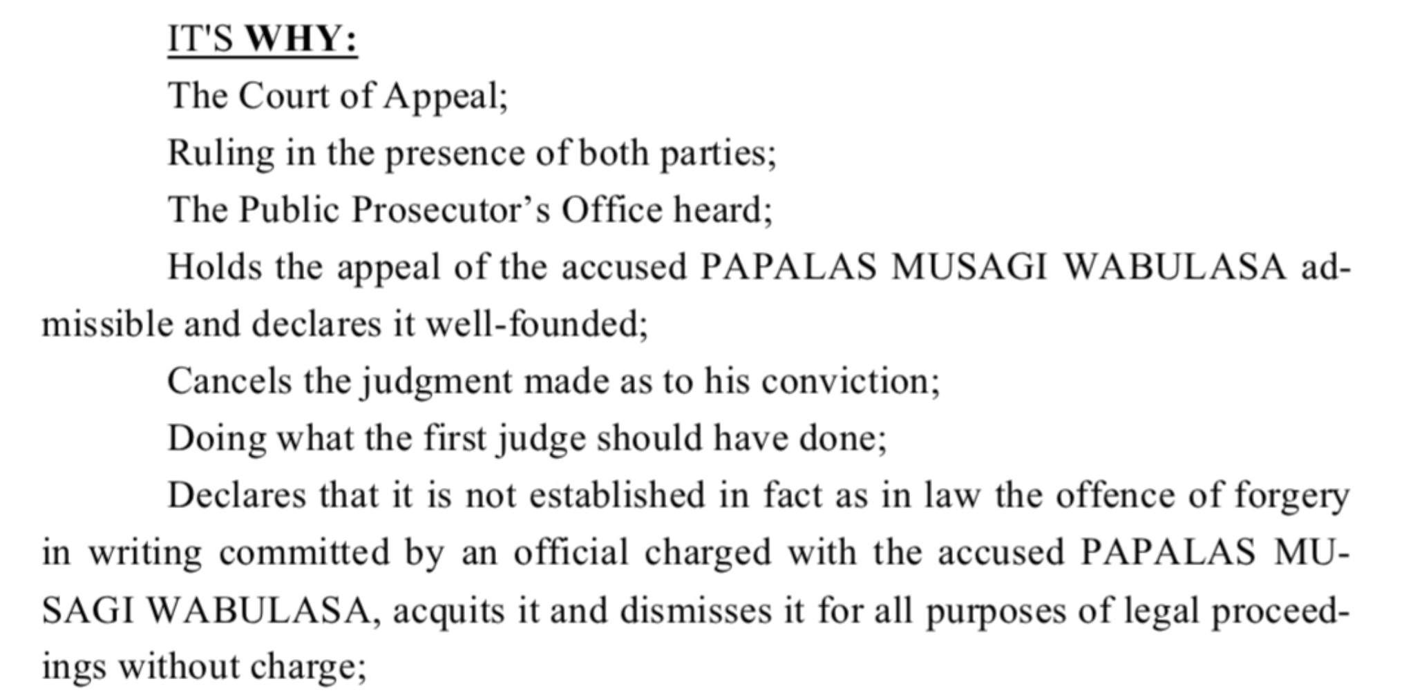 Oh and by the way, that article you keep copy and pasting is wrong. ‘The clerk’ aka Papalas Musagi Wabulasa’s sentence wasn’t suspended it was cancelled as the appeal judge found that his conviction was not established 'in fact as in law' LMFAO