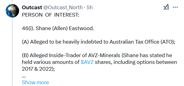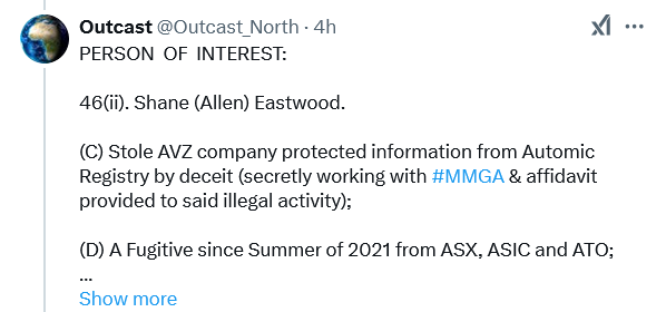 AVZ had very little cash which was probably the reason the fees had not been paid to date. We didn't go ahead with Locke and assume we hadn't taken any funds from them and CATL, under the new arrangement, is not due to pay anything until the end of the month (l think that is right) so l ask, if the fees have been paid, where did the $$ come from?