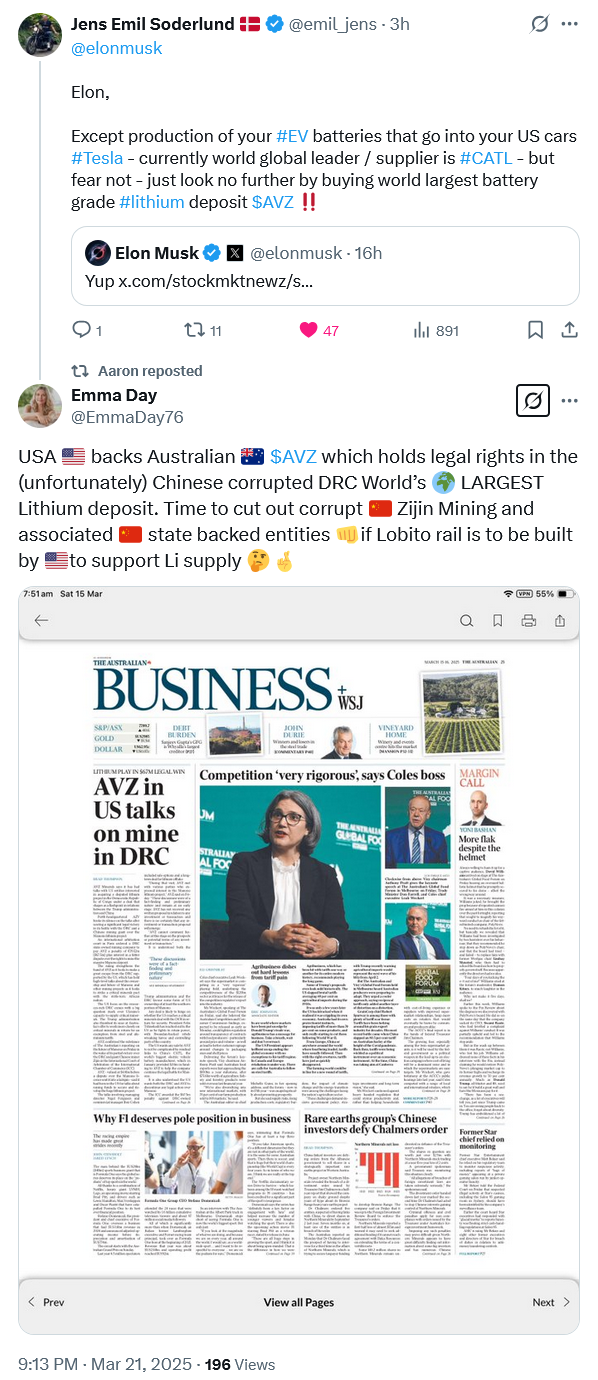 If Australia doesn’t come to the party it will be the dumbest financial decision the country has ever made. Manono will control pricing and supply to the rest of the world whilst the darlings of Oz mining will suffer and diminish.