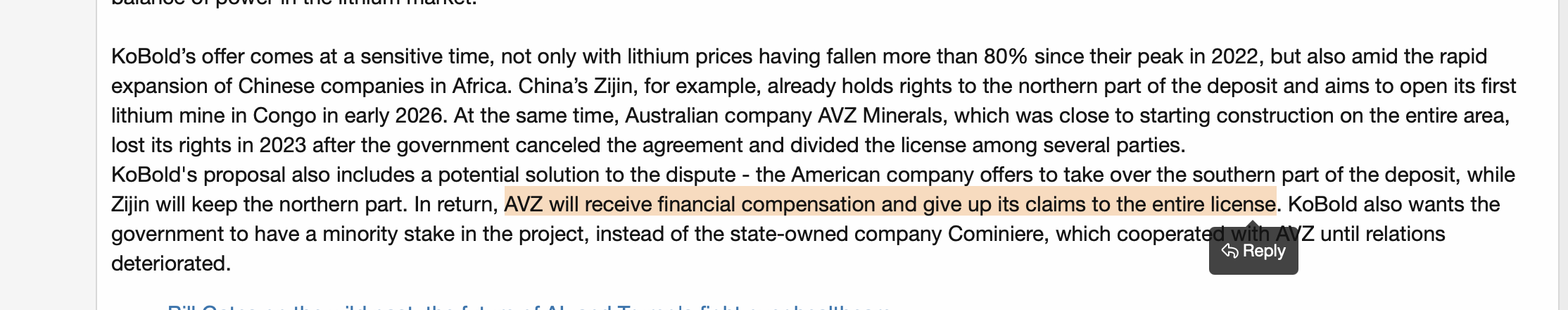 I mean just look at this coverage: https://www.afr.com/company/asx/avz - they are very selective on only presenting bad news stories, even post Tommy the turds exit.
