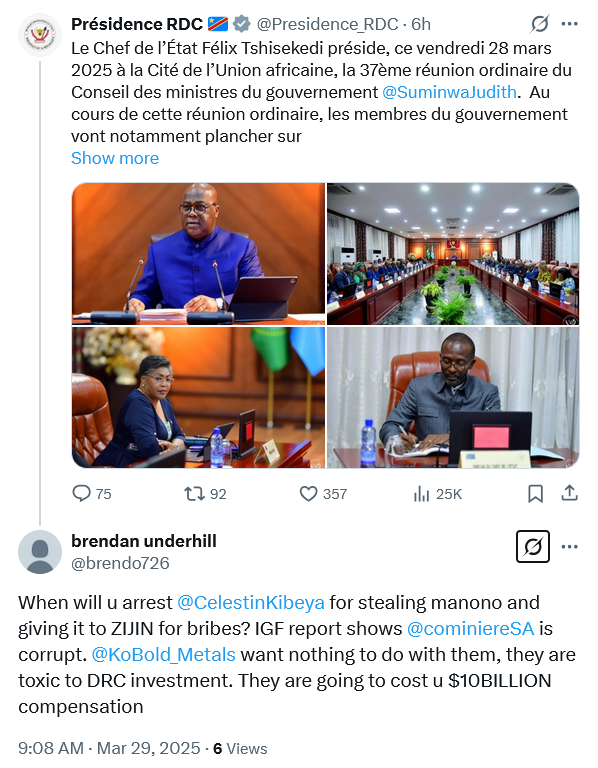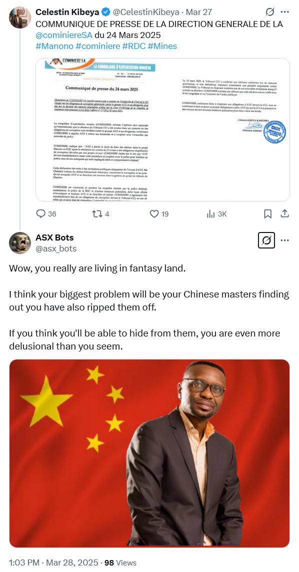 The possible JV with Kobold with Rio as the miner is checkmate for approval by DRC to proceed and award ML to AVZ.