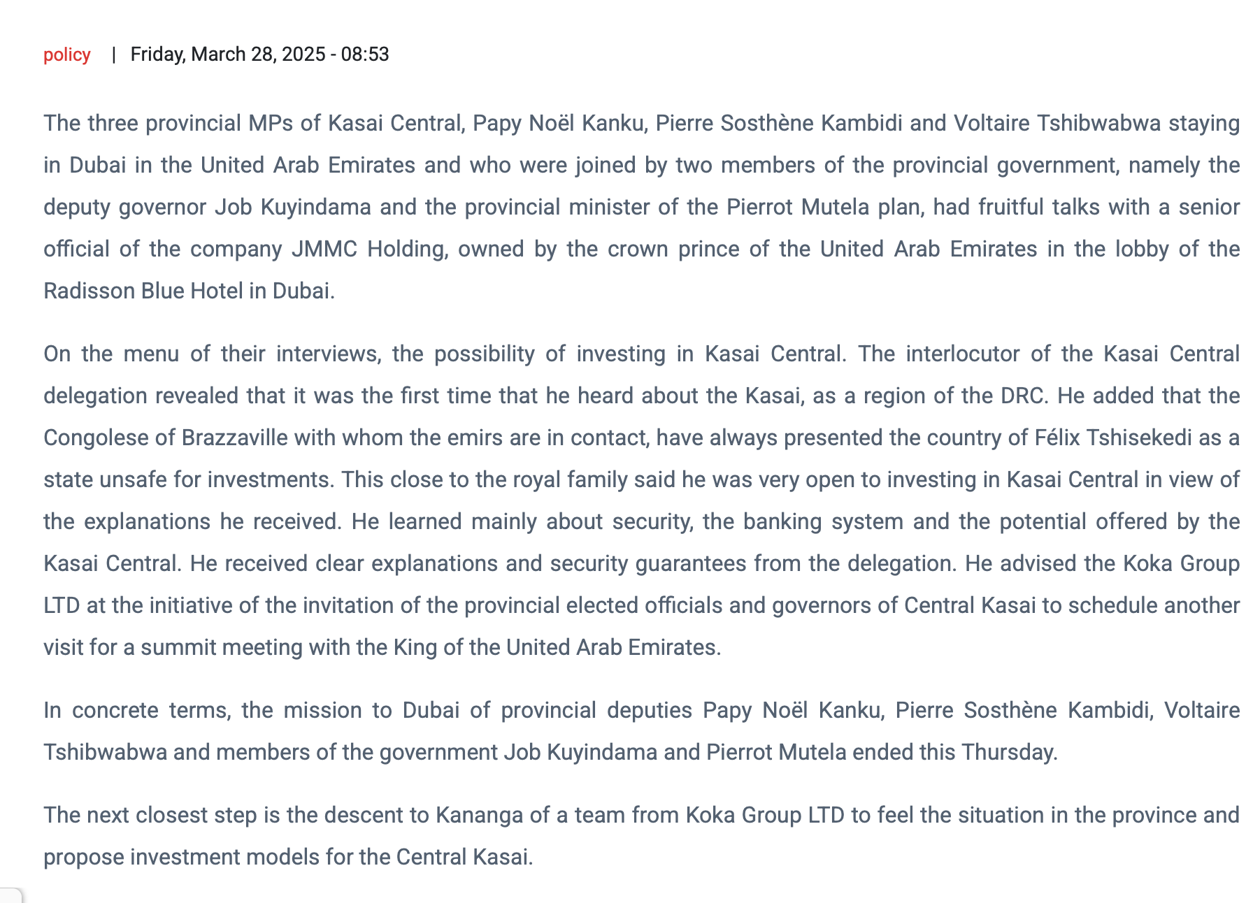 But it shows that the Arabs are keen to invest in the DRC...and they got the most dosh of all of themKasai is a long way from manono