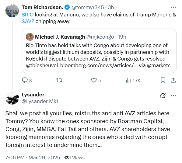 So yes these Bilionaires can afford to drop some cash for Manono.