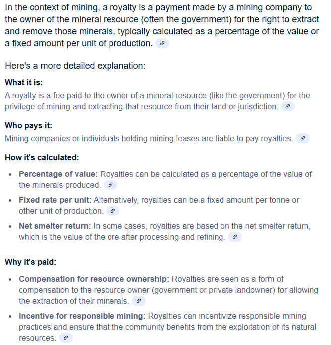 This could work but depends on what the royalty is. Will take 18 months to 2 years for the mine to begin operations but when operating imagine a gross royalty paid quarterly of 15c per share for 30 years..
